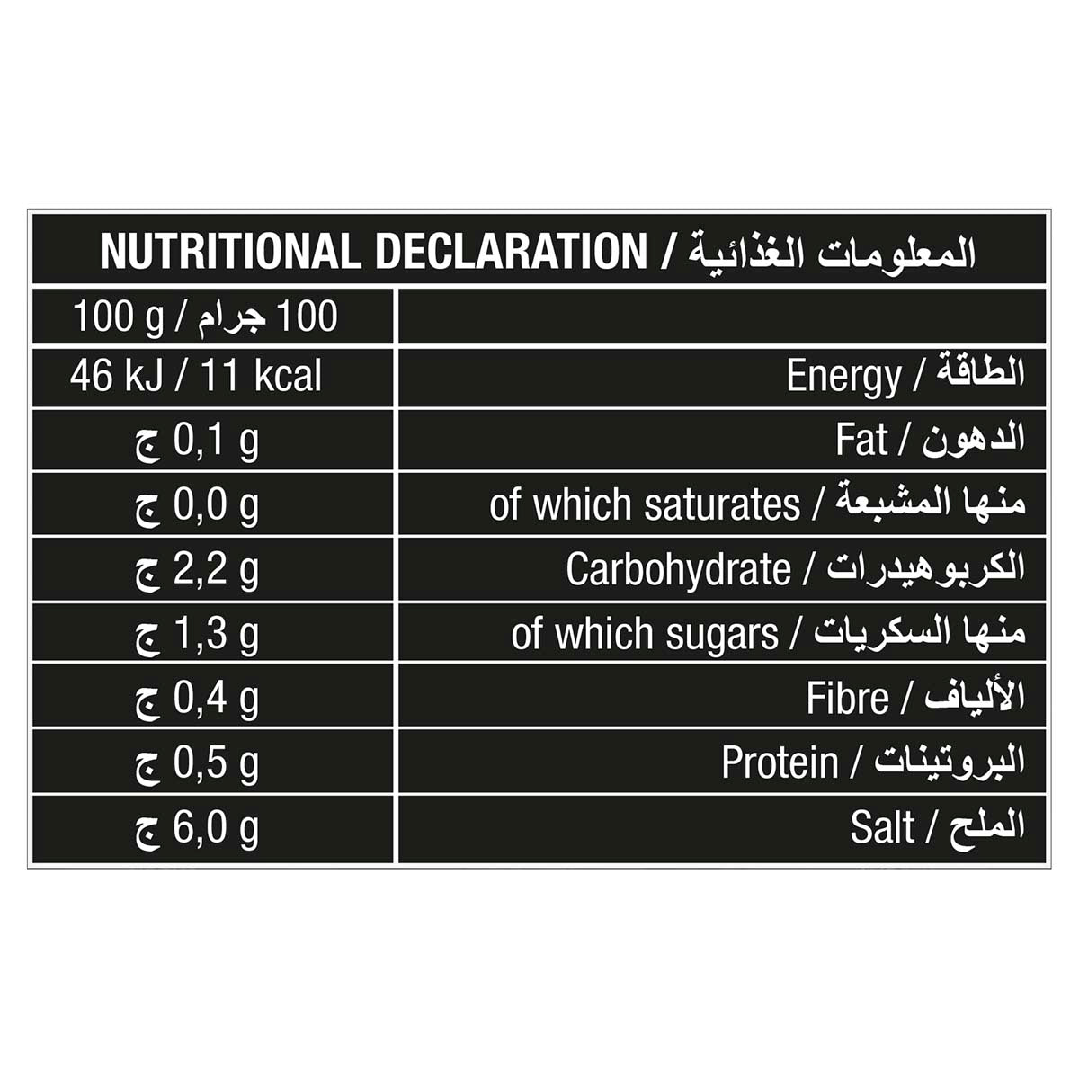 Energy 46 kJ / 11 kcal