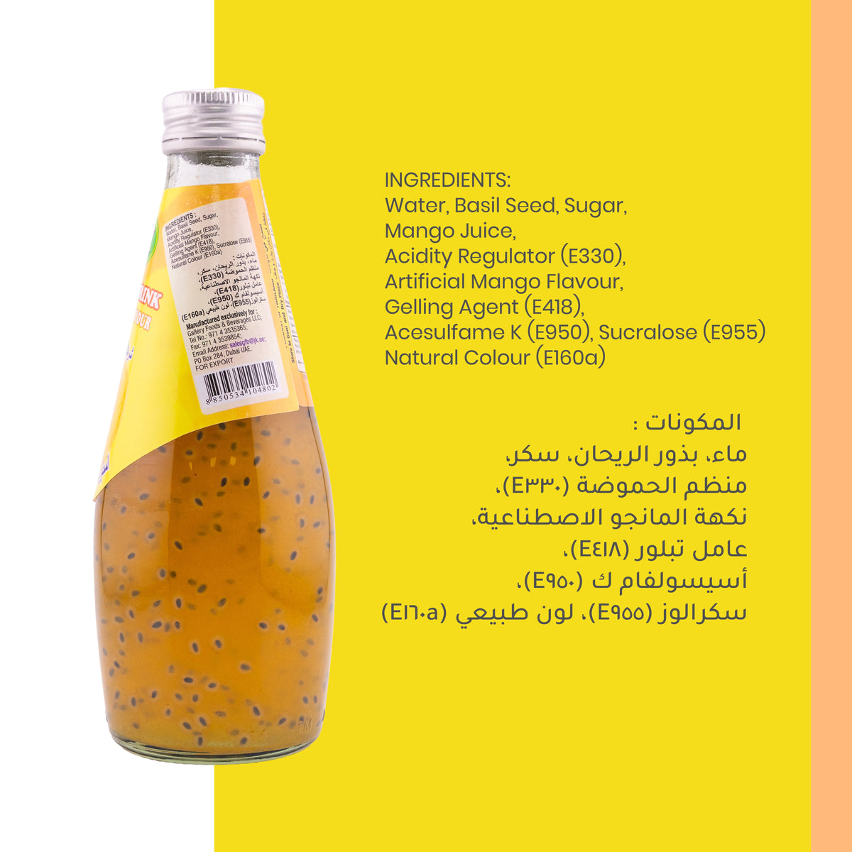 This refreshing and healthy Basil seed drink in Mango Flavor is the perfect, healthy drink to quench thirst. Basil seeds have a number of health benefits which help in reducing stress and cholestrol, while also facilitating digestion and providing many more benefits.