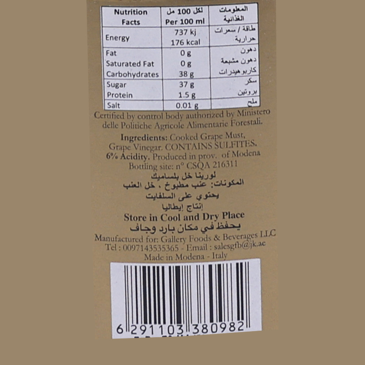 Authentic Production: Complies with PGI standards for Balsamic Vinegar of Modena