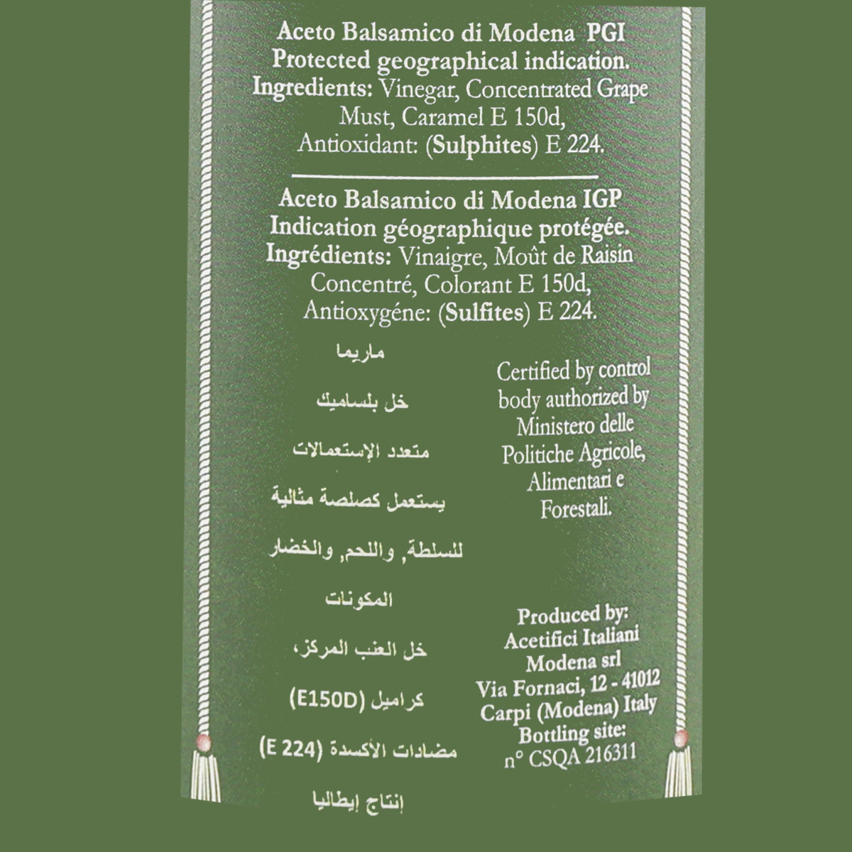 Merima Balsamic Vinegar is a premium Italian vinegar crafted from the must of Trebbiano and Lambrusco grapes. Aged in oak barrels, it develops a rich, sweet flavor with a hint of acidity, making it a staple in gourmet kitchens worldwide. Its dark, concentrated appearance and smooth texture add both flavor and visual appeal to a variety of dishes.